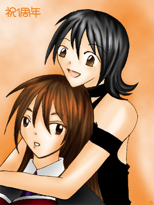 擾さんが凄くかっこ良くて!!(こんな構図に弱いです) ぽえ~っとみておりましたら、し、下に何やら素敵なイラストが!!!! お祝い有り難う御座います。祝ってくださるなんてとても嬉しいです。お言葉だけでも嬉しいのに、イラストやバトンまで!!踊り狂っております。(踊らないでください) あいつの創作バトン、後日こちらからも是非語りたいと思います!!音羽さんの作品に愛を捧げたかったので願ってもないチャンスなのです。 このイラスト、影貴ちゃんがすっごく可愛らしいです!! 黒髪の美少女に黒服は似合うと思いました。この露出加減が大人っぽいのですけど、可愛らしさも含まれていて。 珈音も素敵です!!本を読んでいるところに影貴ちゃんが来たのでしょうね! 一体二人で何をするのやら。まさかとは思いますが、手を出さないことを祈ります。いくら腹黒ブログペットでもしないとは思いますが。 この素敵イラストを、我が家で飾っても宜しいでしょうか。 それでは、乱文失礼致しました。 あわわ