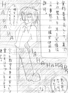 熾堂さんから擾指定で戴きました。 ので久々に擾をば。 大学五年生の夏休み。午前四時。 コヤツが朝起きて雨戸を開け始めると兄は眠りにつきます。 1.この人のこと好きですか? 好きか嫌いかといえばき…好きだようん!(怪 時々むっとすることがあるけど無意識に描いてるときがあるから嫌いではない。むしろ、使い勝手は彩社内でも影貴に次ぐ使いやすさ。 1.5.この人の魅力について語ってください。 俺様ヘタレ?(笑 2.この人のこと何て呼んでる? じょう 2.5.この人の台詞や行動で印象に残ったのは? 今思いっきりファイル漁っちゃった。そして絵の酷さに自己嫌悪(汗 49期学園祭で実行委員権力を行使してるシーンがあるんですが、そこで仁王立ちして高笑いしてるのがぱっと浮かびます。折角なので本邦初公開五年前の漫画。 これ。 >>周りの文章が気になりますね。2年生(影貴達)が生徒会の反対を押し切って「コスプレ喫茶」やろうとしたら暇な不参加生徒達が参加志願してきて云々という下り。 擾マニアの相方によると威張ってるかてれっとしているかだそうです。ツンデレですね。(笑 3.お二人は迷子になったそうで ここのお二人が誰を想定するかで面白みが変わるんですが。 尋乃だったら「お前がふらふらしてるから迷ったんだろ!」とか罪をなすりつけて憤慨してそうです。作者だったら「お前年上だろしっかりしろよこの役立たず!擾のくせに!」と罵倒されてそうです。 4.イメージカラーは? ■ただの赤より少しくらいのです。瞳の色です。 4.5.させてみたい格好は? スケスケタンクトップ(やメレ 嘘です。彩雲国みたいな中国貴族の格好させてみたいです。絶対似合うと思うんだ。志魔村家だもん。 5.イメージソングは? B'zのDEEP KISSかなぁ。しっとりだと恋じゃなくなる日とか。最近聞いてないな、B'z…ぱっと浮かばなかった。 5.5.この人が動物だったら何だと想う? オオカミ。 6.血液型は何だと想う? なんだっけ、Aだっけ?(おい 7.5.この人は受?攻? 攻だろどう考えても。 8.この人に言われたい台詞は? 皆さんで妄想してください。 8.5.この人に言ってみたいことは? 「ばーか、ぶきっちょー」 9.手を繋ぐ、抱き締められる、キスをするなら? どれもされたくないです(酷い作者 だって、加減を知らないから潰されそうなんだもん。 9.5.この人の持ち物をひとつもらえるとしたら? 理系の脳みそ。あとは腕。腕枕して。 どれも具体的には貰えないものなのでありました。 10.バトンを回す人キャラ指定で5人 見てるかどうか解りませんが。 ゆらりさん:ダヴィス様 九里さん:ニノちゃん 城崎さん:珈音くん 本当は、ゲーム制作者様に攻略対象の我が子で答えて貰ってるところが見てみたかったりするけどここを見ているのかどうか…。 |