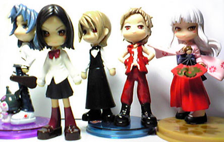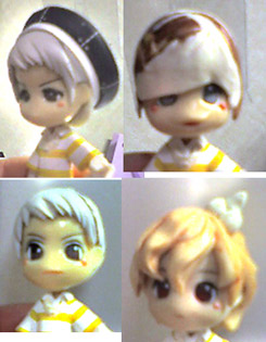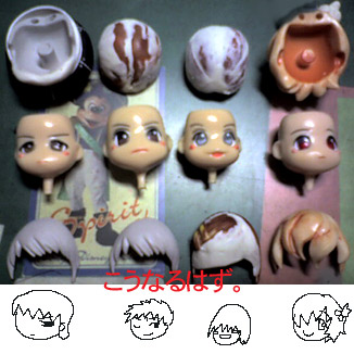 じゃーーん。 凶悪な顔ばかりがそろっています。(失笑 髪の毛のジョイント上赤木君と禁欲眼鏡バージョンがいないので、寂しい感じがします。詳しくはピンキーの部屋に載せたので、是非、是非!見ていってあげてください。私の苦労も浮かばれるはず。あ、あれだ、エロスの化身二人組が完成したんだ。(笑)先生眼鏡バージョンは作成中に髪の毛とれるし、もうやたら面倒でしたよ。 このあとは、とりあえず彩社メンバーの顔を作りつつ制服を…!彩社学園の制服をつくらねば!でもパーツがあらへん!お洋服も作らないとな…机の後ろにある袋に入ったメンバー達が「早く作れー」とうめく声が聞こえます。やることいっぱい。次誰にしようかなー。個人的に蔭が作りたいな…雄一でもいいなー。 |