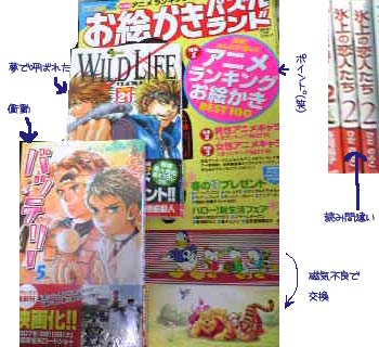 銀行に行ったら通帳の様子がおかしくて、窓口に持っていったら磁気がやられたとのこと。変えざるを得ないので預けたんですが、ふと、銀行も統合したし、もしかしたら無地の通帳になっちゃうのかな…なんて思ってました。今までドナと甥っ子組だったんですが、新しいのは…プーでした!デザインも可愛くなってるよ!なんてこった!三菱万歳!だから銀行の数少ないのに辞められないんだー!(笑 続いてDVDを返して本屋へ。 昨晩夢に見て、なんだか凄くワイルドライフが読みたいなーと思ったら、週末に新刊が出てました。呼ばれてたのか…そして脇にあったバッテリーも買い。一番の衝動買いは雑誌です。また買っちゃったよロジックパズル本…無駄だなーってわかってても辞められないんです。しかも今回はアニメスペシャル。前号ではカラーロジックが009と003でした。前号が欲しかったっちゅーの。あー、きっと京葉線の中でiPod聴きながらロジックといてる女子大生がいたら私だと思ってください。舞浜で降りたらおそらく私で決定です。(笑 そういえば、彩社のロジックパズルを作って公開してたんですが、私の周りであれできる人いないんだよなー。皆に変な目で見られてたりする。 本日午前中の成果。 やっとお祝い絵をサイトに投稿することが出来ました。原画は近々アップします。さーて、少し勘が戻ってきたのでよそのこ…と、原稿描かなくちゃ。(そろそろやばいよね。 仕事よりもロジックがやりたい音羽でした。皆様インフルエンザにはお気をつけて。