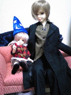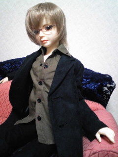 教室Aヘッドを「流し目でセクシーなイケメンにしよう!」と画策。 音羽の定義の中で「流し目でセクシーなイケメンの定義」といえば、 そう、あのひとです。 辞めておけとかそれ間違ってるとか色々聞こえてきそうだけど気にしない気にしない。 目標は常に高く! 講座ではすっぴんからアイホールやまつげ、眉毛の書き方を教えて貰い、ここまで持って行きました。 その後、半年以上放置してましたが、メイクを仕上げ まつげを入れて、 今日は目とウィッグの調整をして、完成! ちょっと幼いというか…優しそうな顔になっちゃいました。 もう少し目つき悪くて邪悪な微笑みでも良かったんだけど。 まぁきっと嫁が現れたら雰囲気が変わるでしょう。(笑 髪の毛はロングヘアをがしがし切って、買ってきたワックスをスプレーして櫛で梳いたら雰囲気が変わりました。 ちょっとぱさぱさしててそれっぽい感じです。 にしても、ウィッグ、髪薄い気がするんですが。 ディーラーさんから買ったやつは結構もっさりして使い心地が良いので愛用しているのですが、これ、髪型綺麗に整えないと地肌が…(汗 ピアスがないので何か探してきます! 追記(22日) うっかりポチったら買えてしまったボディーが、 とーどーいーたー!!! 入金の三時間後に発送という仕事が早い出品者様のおかげで今日到着しました。 いやーもう、昨日から首を長くして待ってましたよ。 ニヤニヤしながら局員さんから丁寧に箱をもら… お、重っ!! Σ( ̄ロ ̄lll) いったい何が入っているんだ(体だよ)と思いつつ床におき、はやる気持ちを抑えて開封… で、でかっ!! Σ( ̄ロ ̄lll) (笑 SD13のロング足なので60cm強。 普段30cmの幼SDの相手してる人間からしたら、倍ですよ倍。 大きい・重いと思わないわけがない! 服を着せて頭をセット…しようとしたのですが、頭って結構セットするの大変なんですね。テンションゴムがきつくて手では出来ず、針金ハンガーを使って結構荒い気がするやり方でセットしました。 服は、昨晩作っていたズボンは裾がまつれていなかったので、ささっとまつって穿かせました。(間に合わせるというちょっぱや具合。) 人形とはいえ男に服着せるのはどうもなんというか恥ずかしいというか複雑な気分なんですが。(笑 手や足をまじまじと見てしまいました。 幼は曲線が多くて小さくて可愛いのですが、手が大きくてごつごつしていて、整った爪なんて再現度が凄いし、綺麗です。 袖を通す時、少しカーブしている手の中に人差し指を通したら、指を握られてるみたいでどきっとしました。これは溺愛する人やなんか勘違いしてしまう人たちの気持ちがわかる…ような気がする…? なぜか「お得だ!」とおもって着せる相手もいないのに落札した500円のシャツ&ロングコートが凄く似合ってました。きっとこの日のためだったに違いない。 全部綺麗に着せてからシャツのボタン開けて着崩したとかいやそんなことは…(したんだな。 というわけで。 はじめまして。 シマムラキョウです。 さっきまで、「ゆっくりしていってね!」状態(笑)だったのに、体がついたら一気にイケメンオーラを放ち始めました。どうしよう格好良い。これがかの有名なスーパードルフィーなのね・・・さすが、スーパーというだけあるわ・・・!先生に向かって格好良いだなんて・・不覚! \(^o^)/ ダマレオヤバカ☆ 昨晩お片付けしてソファーのまわりを整えておいたので早速座って貰いました。 しばらくは振り返ってニヤニヤしながら毎日を過ごせそうです。 かけると並べると大きさの違いが際だちますな。 しかしまだある座れるスペース。 えーーちゃーーん!! はーーやーーくーーーーーー! (笑 以上速報でした。